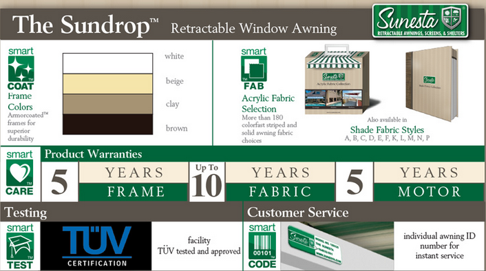 The Sunesta SUNDROP window awnings allow you to choose shade or allow sunlight into your home.