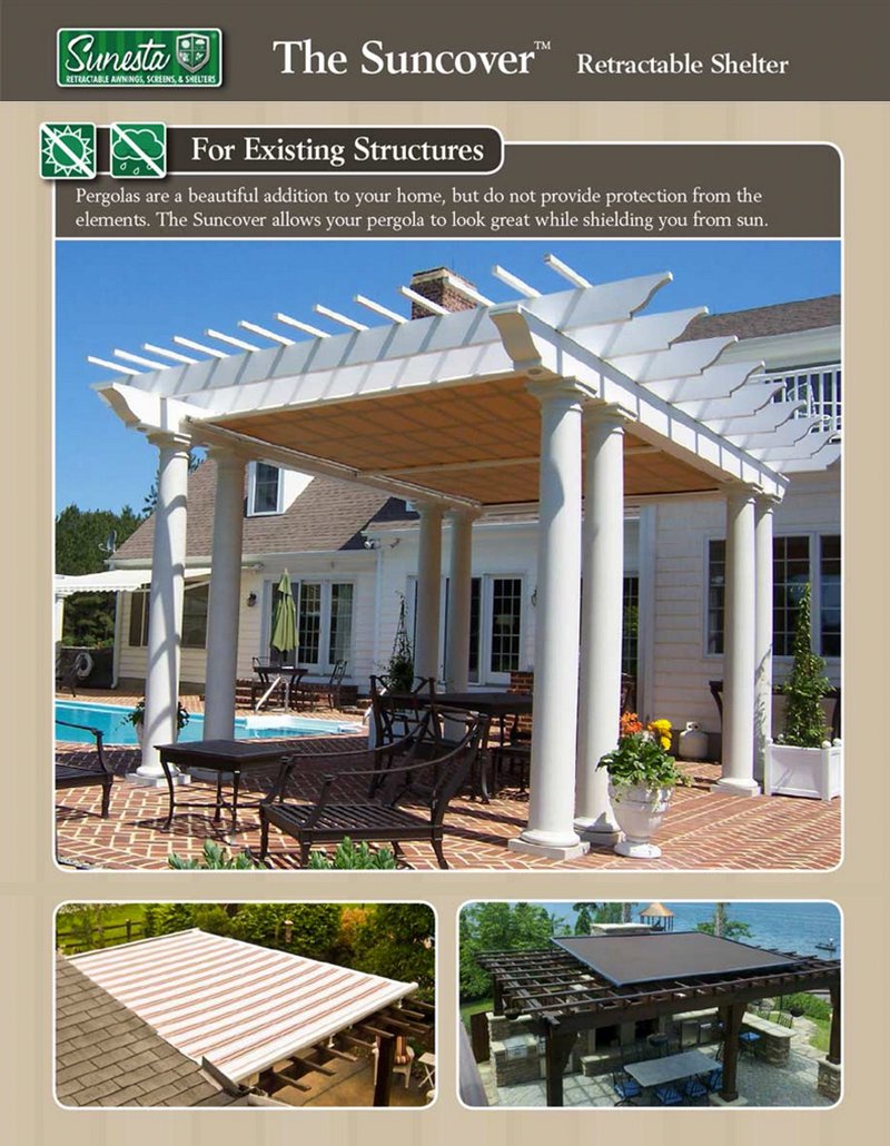 Shielding you from the sun and inclement weather conditions, The Suncover from Sunesta offers you complete protection from the outdoor elements. This versatile retractable awning system can be mounted atop an existing structure such as a pergola, skylight, or sunroom. With single unit widths up to 18’ by 23’ and the ability to join multiple units, the coverage of this awning is only limited to your space. What’s more, The Suncover offers a choice of hundreds of acrylic fabrics making it easy to find the best style for your home.